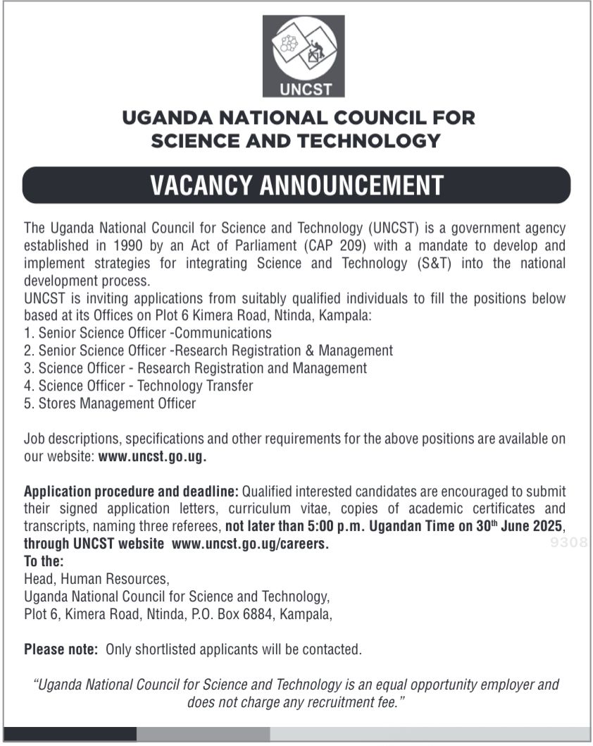 Appointment of Acting Executive Secretary for Uganda National Council for Science and Technology (UNCST)